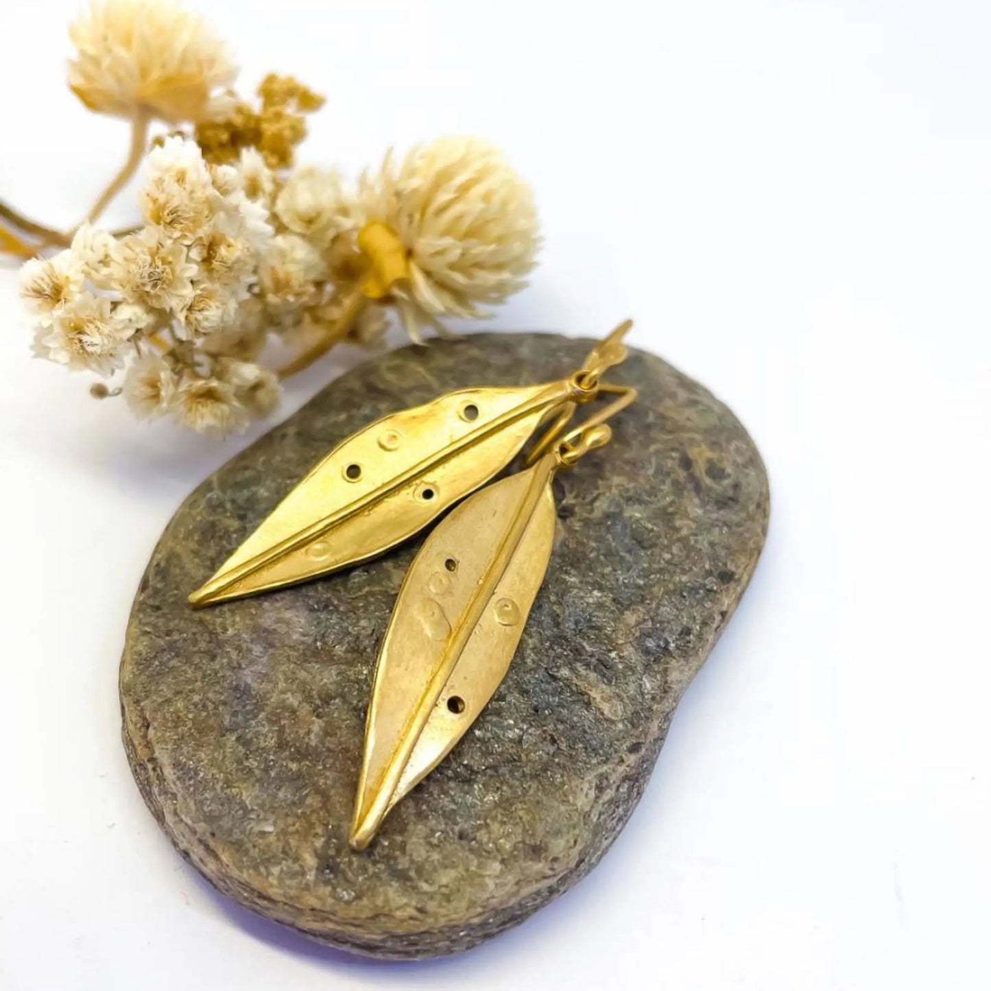 From Auckland-based jeweller Sally Herbert - the Golden Pōhutukawa Earrings celebrate one of New Zealand’s most iconic trees. Hand-cast in sterling silver and finished with a layer of 18ct gold plating, each earring captures the natural curve and textured surface of the pōhutukawa leaf — a symbol of strength, resilience, and belonging.